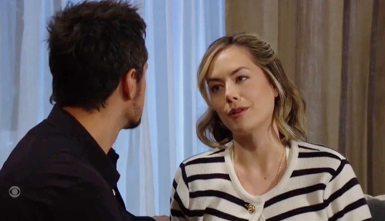 Brooke rolls her eyes, and Ridge teases her about that reaction whenever they talk about Hope and Thomas. She confesses that it’s not easy for her. Ridge tells her to work on it, as he believes there’s something beautiful and even magical about their kids’ relationship.