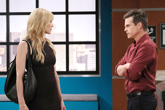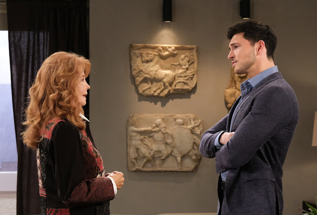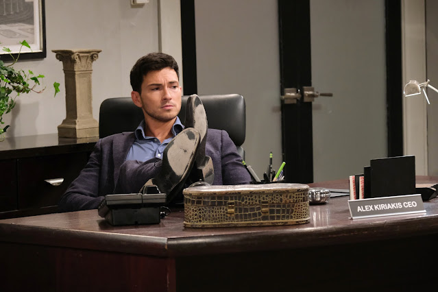 Maggie is in her office at Titan and she happily throws out Vivian’s nameplate and reinstalls her own on the desk. Alex comes in and is surprised to see her there. She tells him that when they discovered that Victor did have a will she kicked Vivian out of the house and the company and took her old job back. Alex tells him that he’s happy she was able to kick Vivian out of the house but that Victor left him in control of Titan.