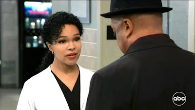 Maxie is talking to Sasha and Gladys about the planning for the Nurse’s Ball when Cody comes in. Sasha tries to introduce them but he says that he met Gladys at The Savoy. Maxie wants to know what Gladys was doing at The Savoy. Gladys says she was just stopping in. Cody covers for her and says they were both there for “lady’s night”. Maxie has a question for Cody and drags him outside so they can talk. Gladys wants to leave but Sasha stops her. She suggests that they go to the Nurse’s Ball together and offers to buy Gladys a gown. Sasha also tells her that she wants to give her a salary as her conservator.
